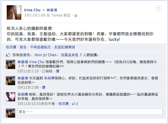 - 「 何其幸運能夠與你們相遇。滿懷感謝,讓我能夠替你們紀錄此生最為珍貴的畫面與時刻,